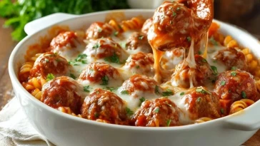 Fleischbällchen-Auflauf mit Nudeln