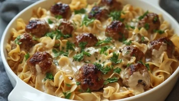 Schwedische Fleischbällchen-Nudeln-Auflauf