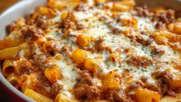 Rindfleisch-Rigatoni-Auflauf mit Käse