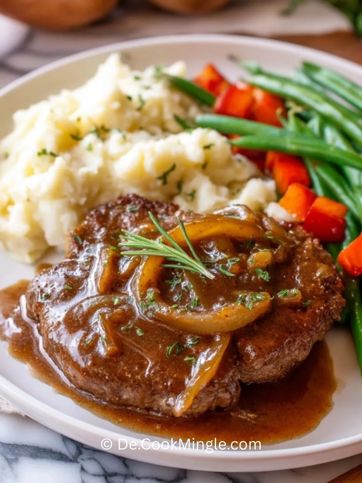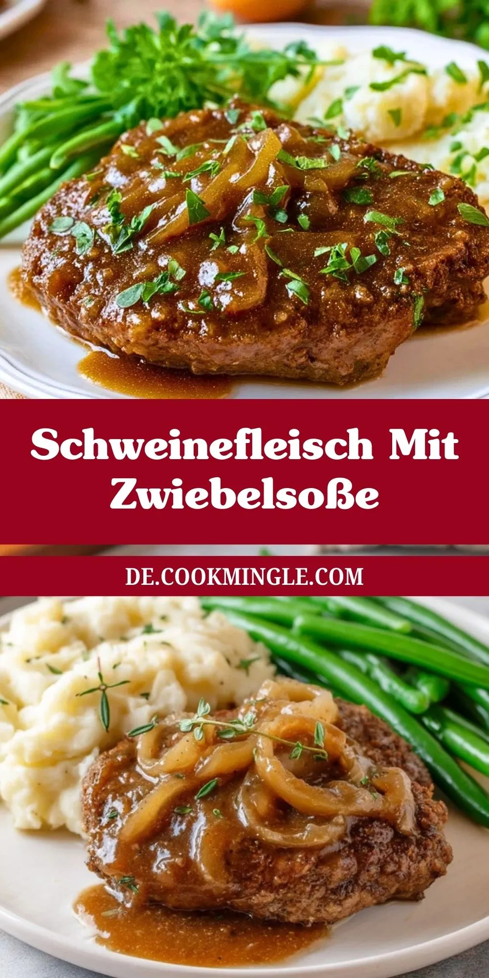 Was macht dieses Gericht so besonders? Die sanft karamellisierten Zwiebeln verleihen der Soße eine süßliche Tiefe, während das Schweinefleisch schön saftig bleibt. In Kombination mit Kartoffelpüree und grünen Bohnen ist es ein Festmahl, das Kindheitserinnerungen weckt und jeden Genießer begeistert.