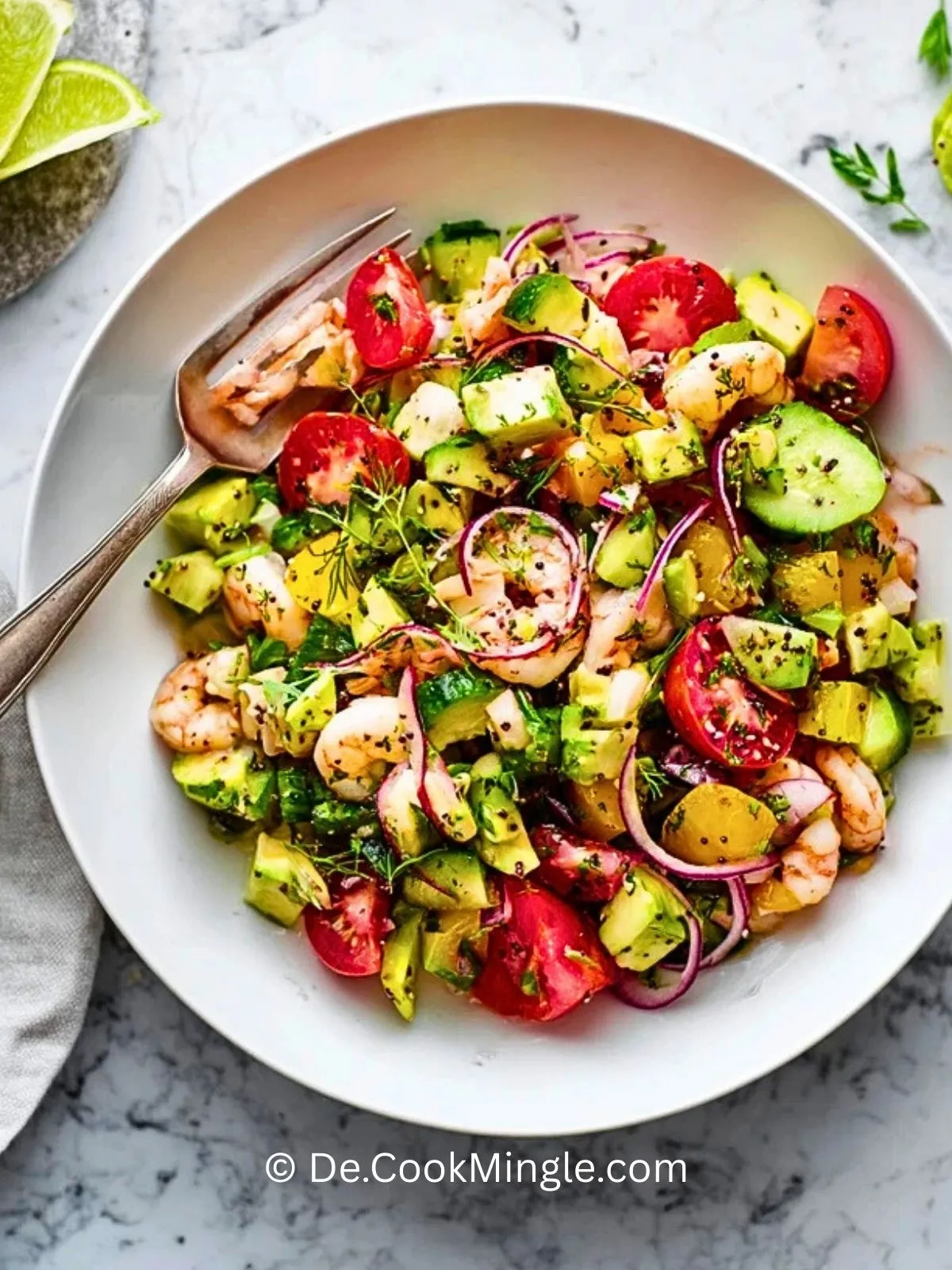 Frisch, leicht und sommerlich – der Sommer Garnelensalat vereint zarte Garnelen, knackiges Gemüse, süße Mango und frische Kräuter in einem farbenfrohen Salat. Perfekt für heiße Tage, zum Grillen oder als schnelles, gesundes Mittagessen.