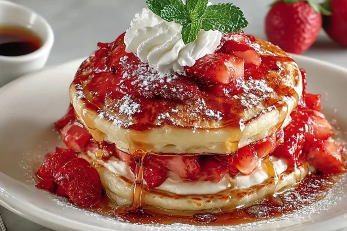 Fluffige Erdbeer-Cheesecake-Pfannkuchen