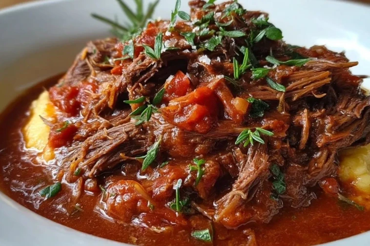 Zart geschmortes Rindfleischragout aus dem Slow Cooker, reich an Tomaten, Kräutern und Rotwein. Perfekt für ein gemütliches Sonntagsessen, das Herz und Seele wärmt. Ideal mit Kartoffelpüree, Polenta oder Bandnudeln.