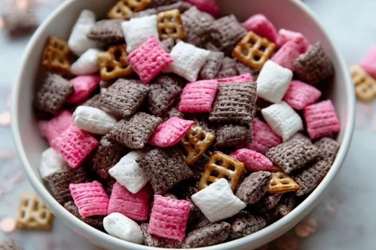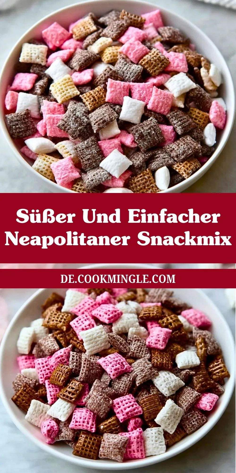 Süßer und Einfacher Neapolitaner Snackmix – der farbenfrohe Knabberspaß für jeden Anlass! Knusprige Cerealienwürfel, umhüllt von Schokolade, Erdbeer- und Vanille-Glasur, treffen auf knackige Salzbrezeln. Schnell gemacht, kein Backen nötig und ein echter Hingucker für jede Party, den Fernsehabend oder als kreatives Mitbringsel!