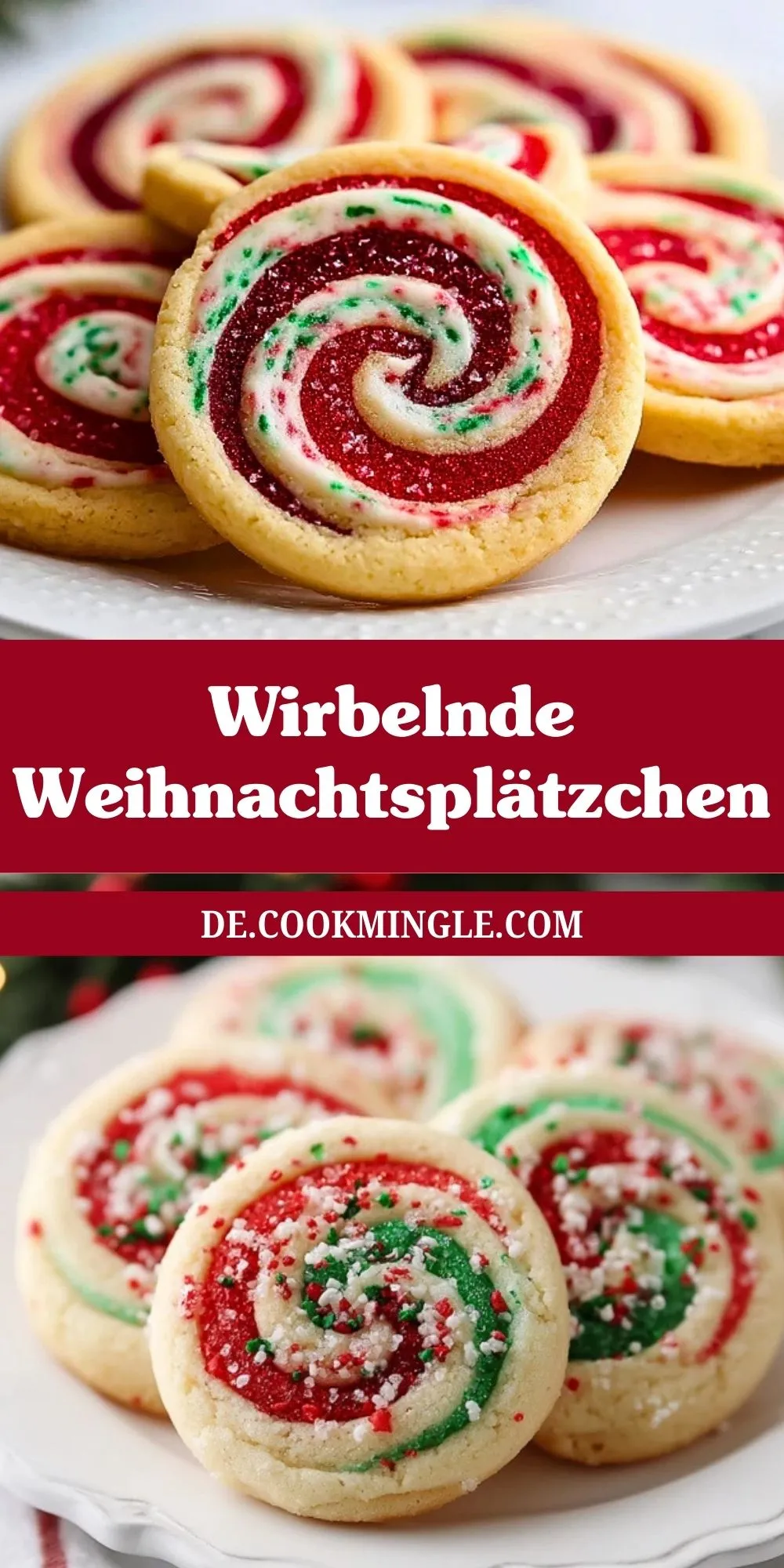 Wirbelnde Weihnachtsplätzchen verbinden zarten Vanille-Mürbeteig mit leuchtend roten und grünen Spiralen – perfekte Hingucker auf jedem Adventsteller, die trotz ihres ausgefallenen Looks überraschend einfach zuzubereiten sind.