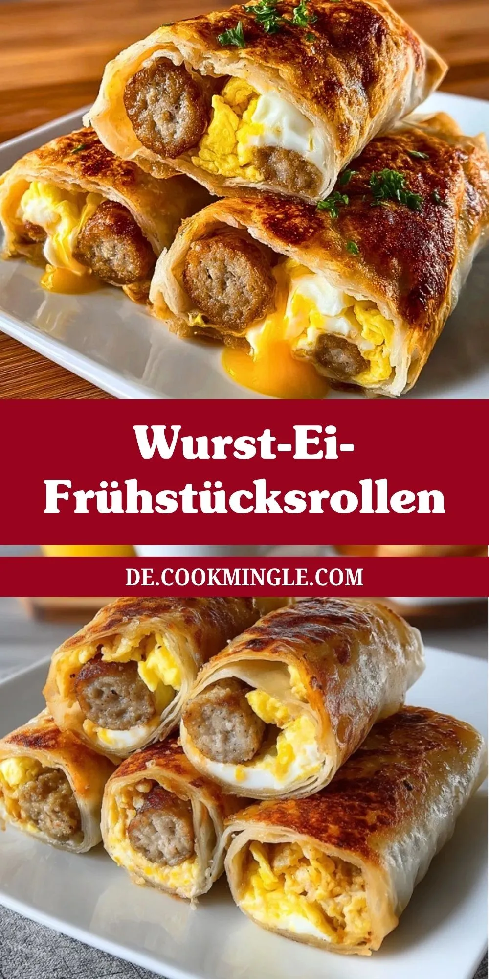Ja, das ist sogar eine der größten Stärken dieses Rezepts. Du kannst die Füllung vorbereiten, die Rollen formen und sie bis zum Backen im Kühlschrank lagern. Auch fertig gebackene Wurst-Ei-Frühstücksrollen lassen sich gut aufbewahren und später im Ofen oder in der Heißluftfritteuse wieder knusprig erwärmen.