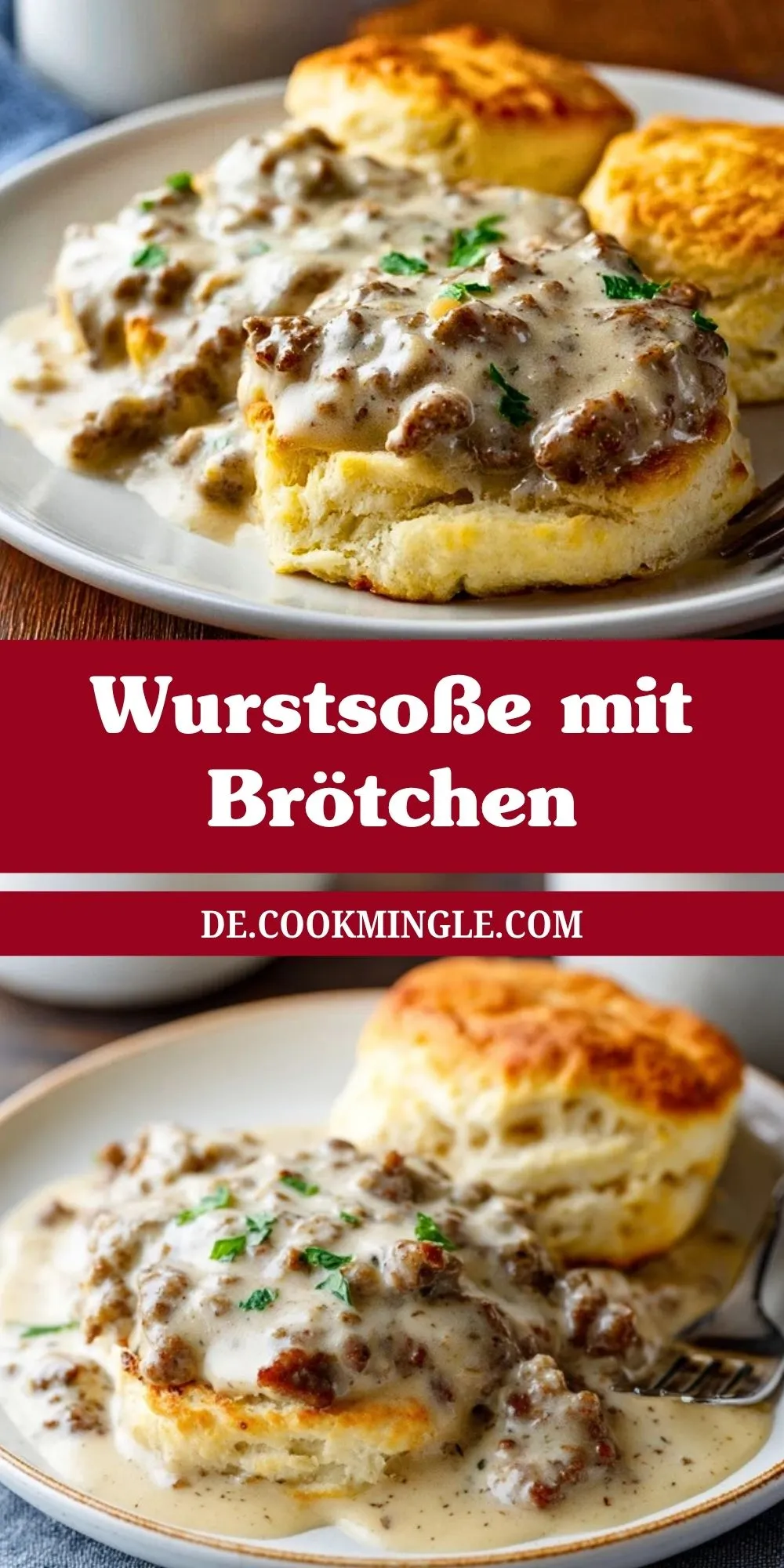 Eine cremige, pfeffrige Wurstsoße und goldbraune, fluffige Brötchen machen dieses Gericht zu einem herzhaften Frühstücksklassiker. Es ist schnell gemacht, wunderbar sättigend und schmeckt am besten direkt warm serviert.