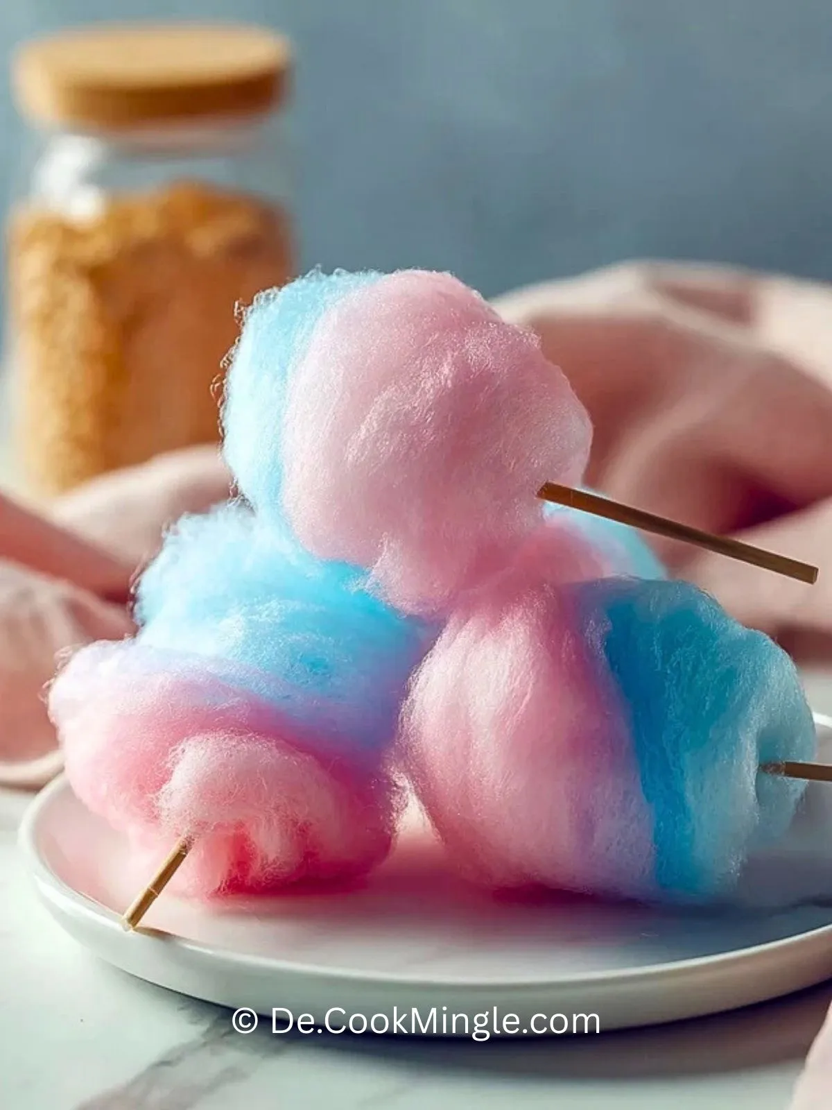 Holzstäbchen – Dienen als Griff, um die Zuckerfäden zu einer hübschen, lockeren Zuckerwatte aufzuwickeln. Sie machen das Servieren und Essen deutlich einfacher – ganz wie auf dem Jahrmarkt.